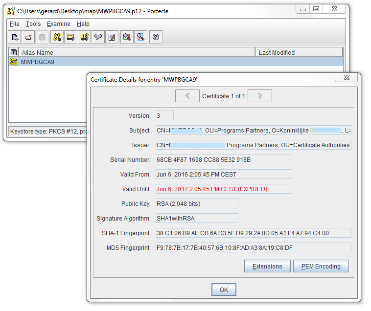 Seeing a certificate in plain text format inside a pkcs12 storage file.