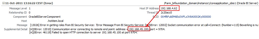 The parameter FMW_SECURITY_SERVICE_URL has still the last of a bad IP address of the file NQSConfig.ini