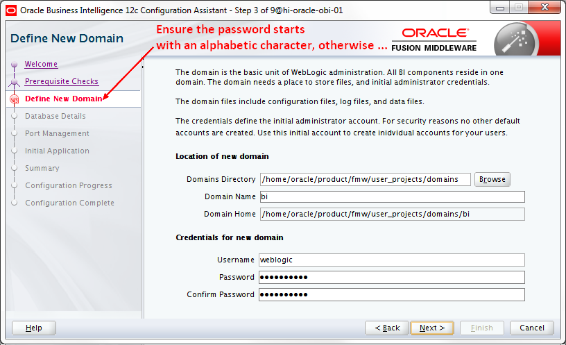 [CONFIG] [BI Configuration] [BIEE]:2018-01-10T11:14:27.927+0000 Failed single shot step: BIEE with: Execution of [/home/oracle/product/fmw/oracle_common/common/bin/wlst.sh, /home/oracle/product/fmw/bi/modules/oracle.bi.configassistant/biee.py, /home/oracle/product/fmw, /home/oracle/product/fmw/user_projects/domains/bi, weblogic, Expanded, hi-oracle-obi-01, 9502, 9503, ORACLE, oracle.jdbc.OracleDriver, jdbc:oracle:thin:@//hi-oracle-db-02:1521/orcl, OBI, jdbc:oracle:thin:@//hi-oracle-db-02:1521/orcl, ] failed with exit value 1