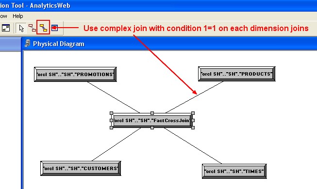 - in the physical layer, select the FactCrossJoin table and the dimensions
