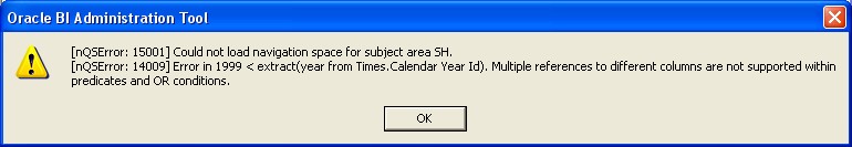 [nQSError: 15001] Could not load navigation space for subject area SH.