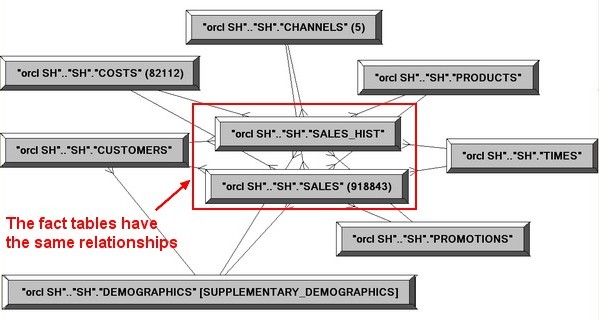 - for the Cost table : COSTS.PROD_ID = SALES_HIST.PROD_ID AND COSTS.TIME_ID = SALES_HIST.TIME_ID AND COSTS.PROMO_ID = SALES_HIST.PROMO_ID AND COSTS.CHANNEL_ID = SALES_HIST.CHANNEL_ID