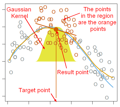 - The kernel is a Gaussian distribution.