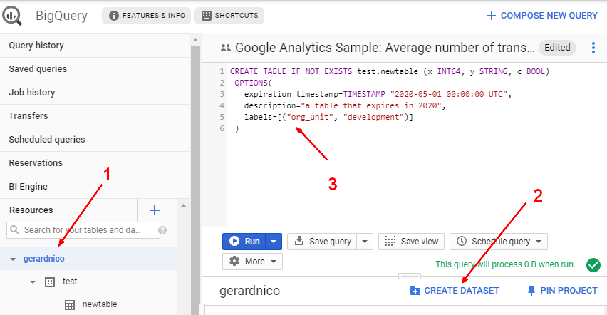 CREATE TABLE IF NOT EXISTS mydataset.newtable (x INT64, y STRING, c BOOL)