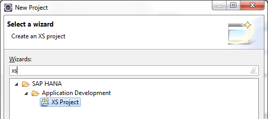 After installation of SAP HANA tools the XS project wizard might not show up in the list of wizards. In this case: