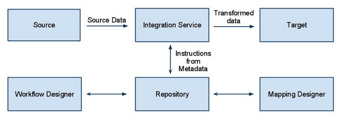 The Integration Service can combine data from different platforms and source types. For example, you can join data from a flat file and an Oracle source. The Integration Service can also load data to different platforms and target types.