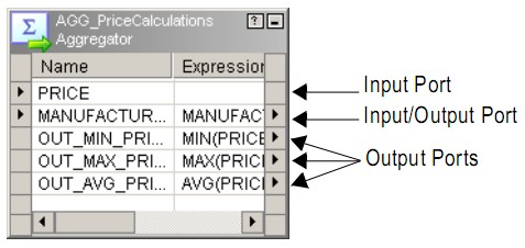 - Port type. Transformations may contain a combination of input, output, input/output, and variable port types