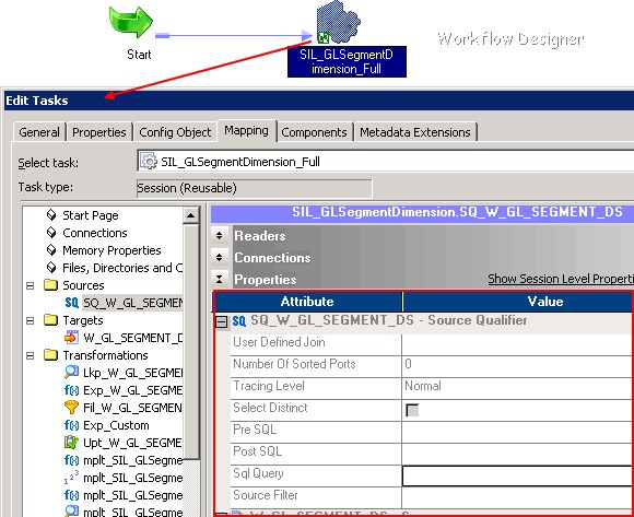 The SQL query and other attributes can be override by the session attributes when the mapping is run.