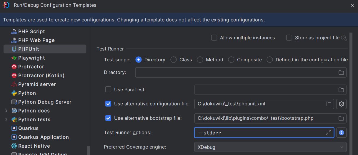 - For General Dokuwiki development, you just need to set the phpunit.xml