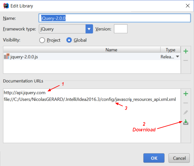 Preferences | Languages & Frameworks | JavaScript | Libraries – click Download and search for the library