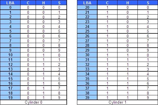 Conversion between CHS to LBA