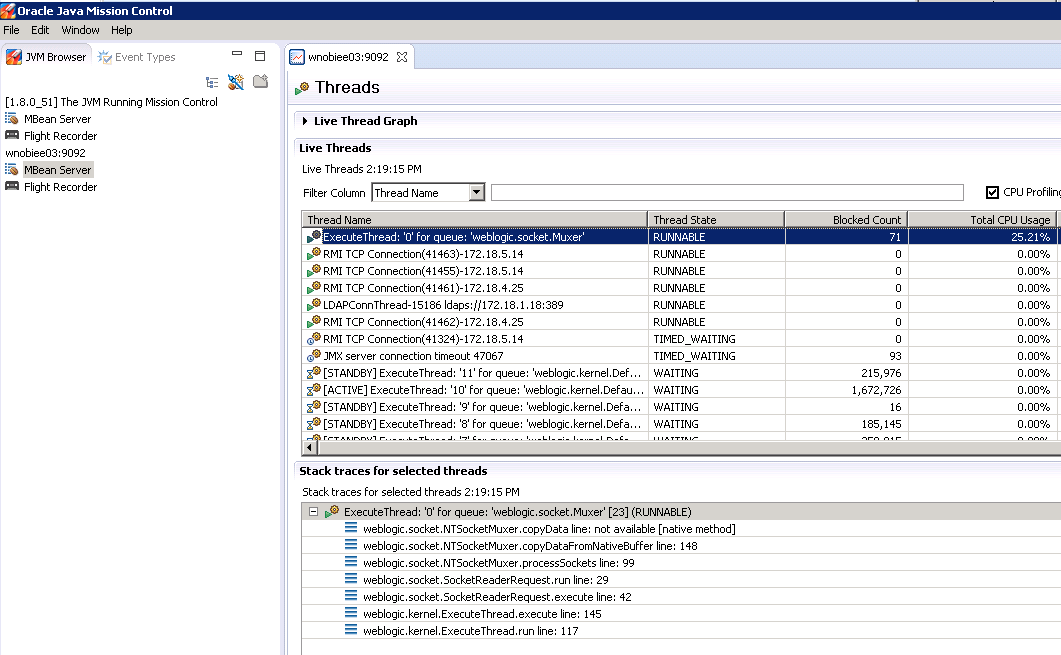 | BLOCKED | The thread is blocked waiting for a monitor lock. |