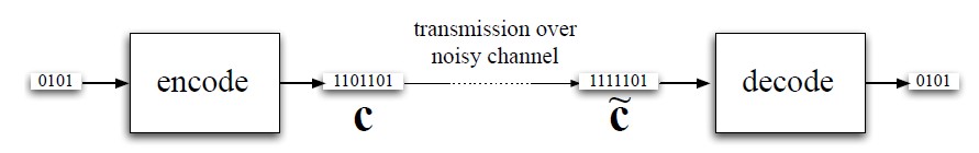 - Sender encodes 4-bit block as a 7-bit block c (a codeword)