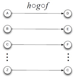 - <math>(g \circ f) : A rightarrow C</math>