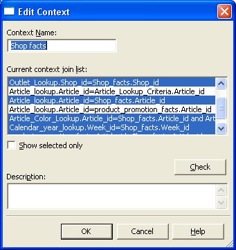 Contexts are a collection of joins which provide a valid query path for SAP BO - Web Intelligence to generate SQL.