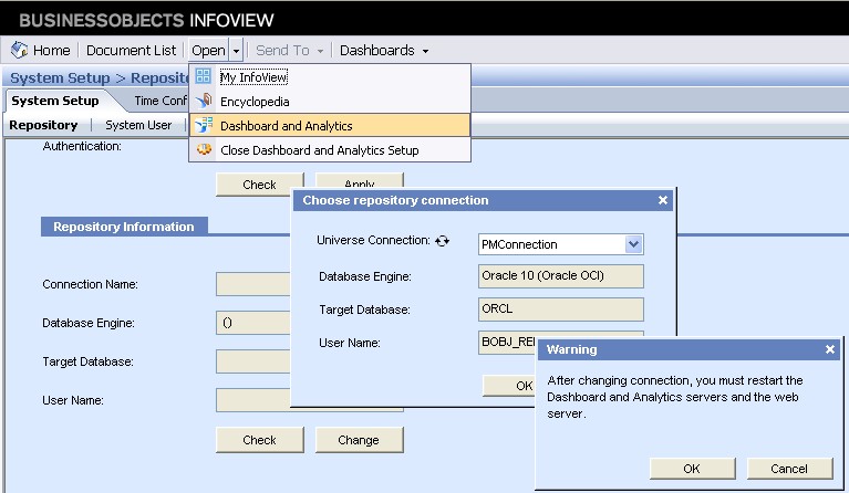 If this is the first time you have installed Dashboard and Analytics, you need to create the Performance Manager repository before users can start to work with Dashboard and Analytics applications.
