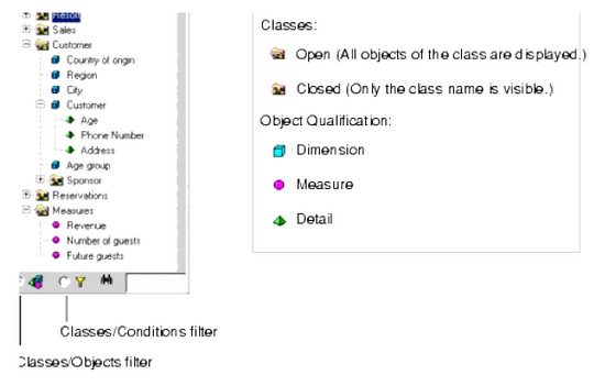 You create the classes and objects in a SAP BOBJ - Universe using the Universe pane. The Universe pane presents a hierarchical view of the classes and objects in the active universe. You use the Universe pane to view, create, edit, and organize classes and objects
