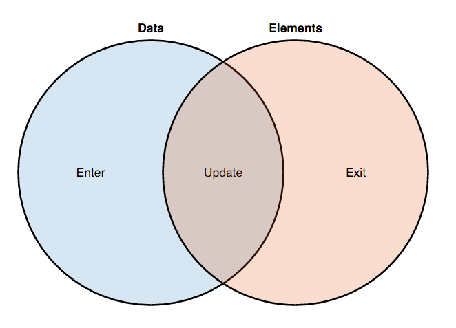 data operator: The updating nodes are simply returned by the data operator, convenient for the common case where the enter and exit selections are empty.