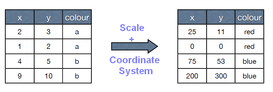 Scales control the mapping between data and aesthetics, and control the display of the matching guide (axis or legend)